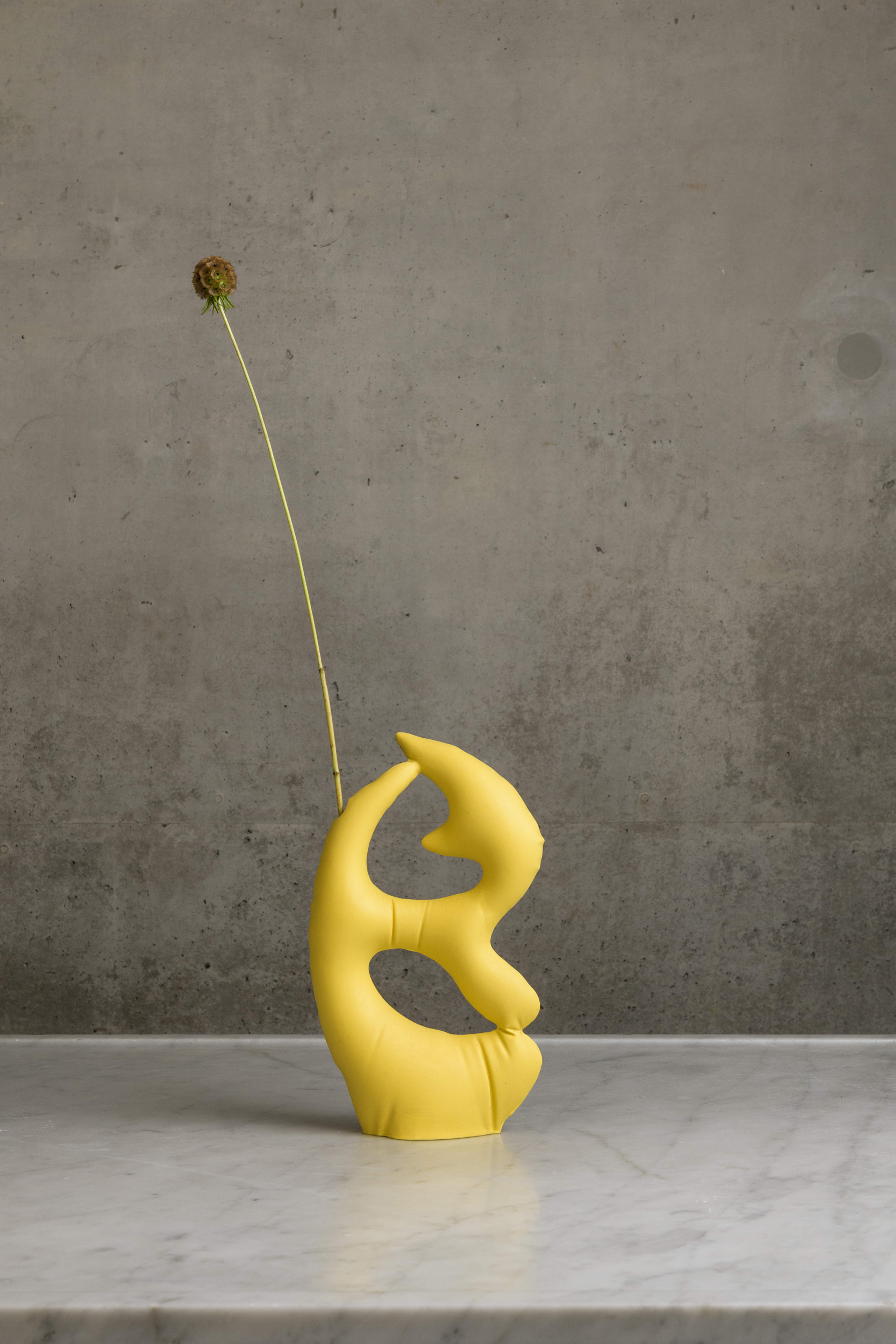 One Size 34×17×7cm 0,5kg Form Alphabet creates a structured field of iterated forms in which language unfolds through a playful, concise approach. Inspired by pictograms and the communicative power of visual symbols, the objects exist first and foremost as sculptures and are rooted in explorations of form, colour, and semantic play. When filled with water to add a flower, the object transforms into a vase.