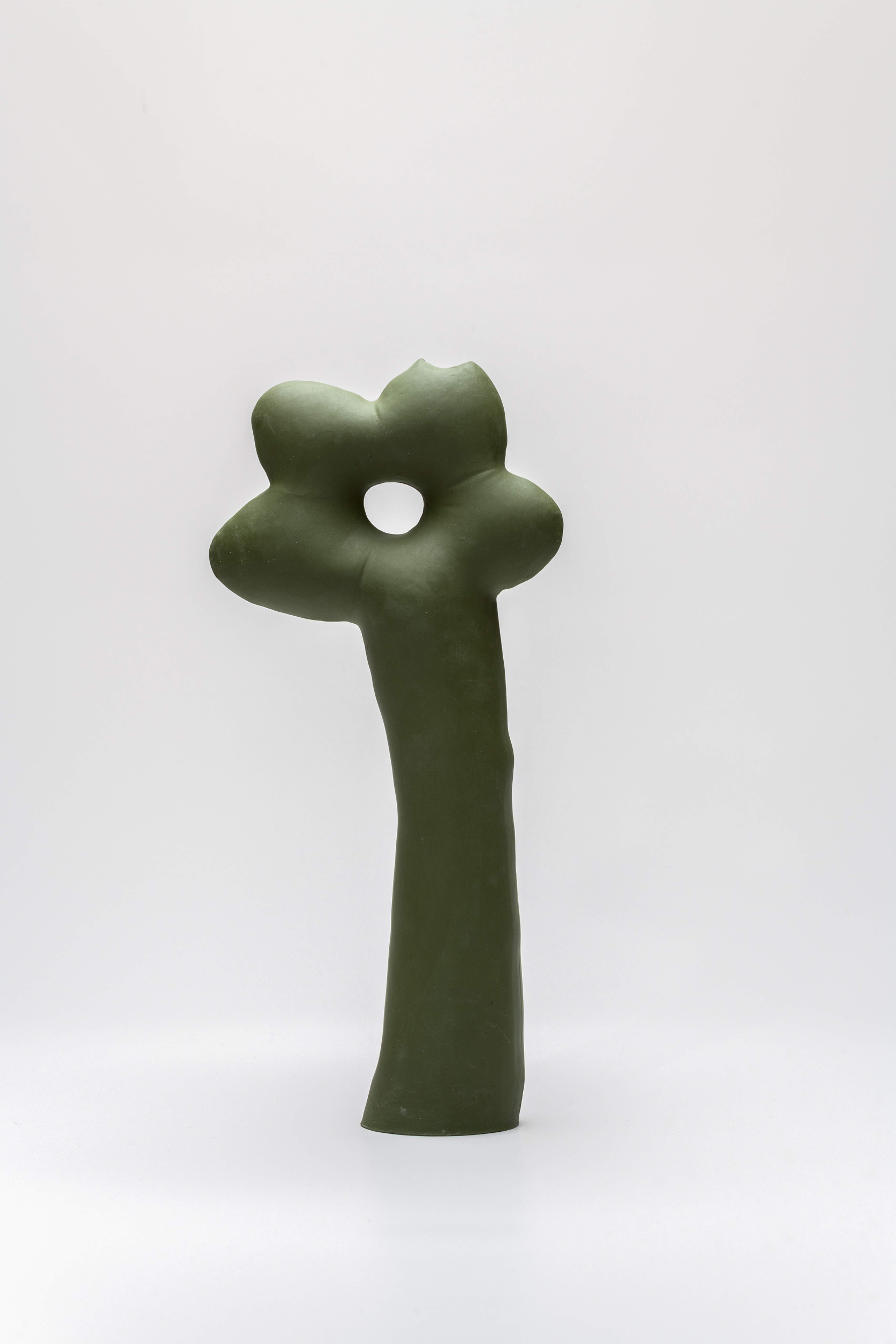 Form Alphabet creates a structured field of iterated forms in which language unfolds through a playful, concise approach. Inspired by pictograms and the communicative power of visual symbols, the objects exist first and foremost as sculptures and are rooted in explorations of form, colour, and semantic play. When filled with water to add a flower, the object transforms into a vase.